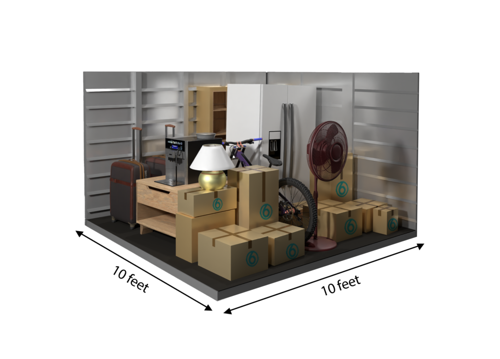 This 100 sq ft storage unit is roughly the size of a standard bedroom, offering space for the contents of a one- to two-bedroom apartment. It can hold larger furniture, appliances, and multiple boxes—perfect for moving, downsizing, or storing extra inventory for your business.