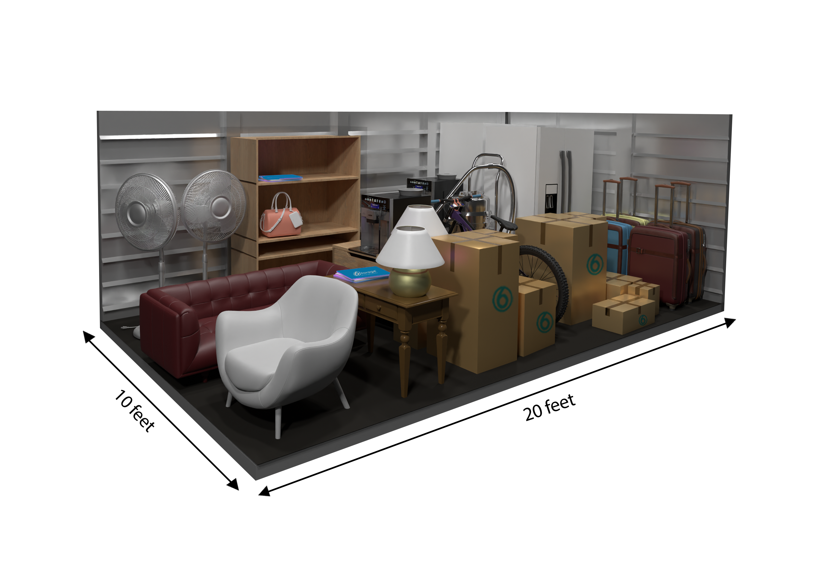 This 200 sq ft storage unit is about the size of a standard one-car garage, providing ample space for the contents of a multi-bedroom home. It can accommodate large furniture, appliances, boxes, and even vehicles—ideal for long-term storage, major moves, or business inventory.