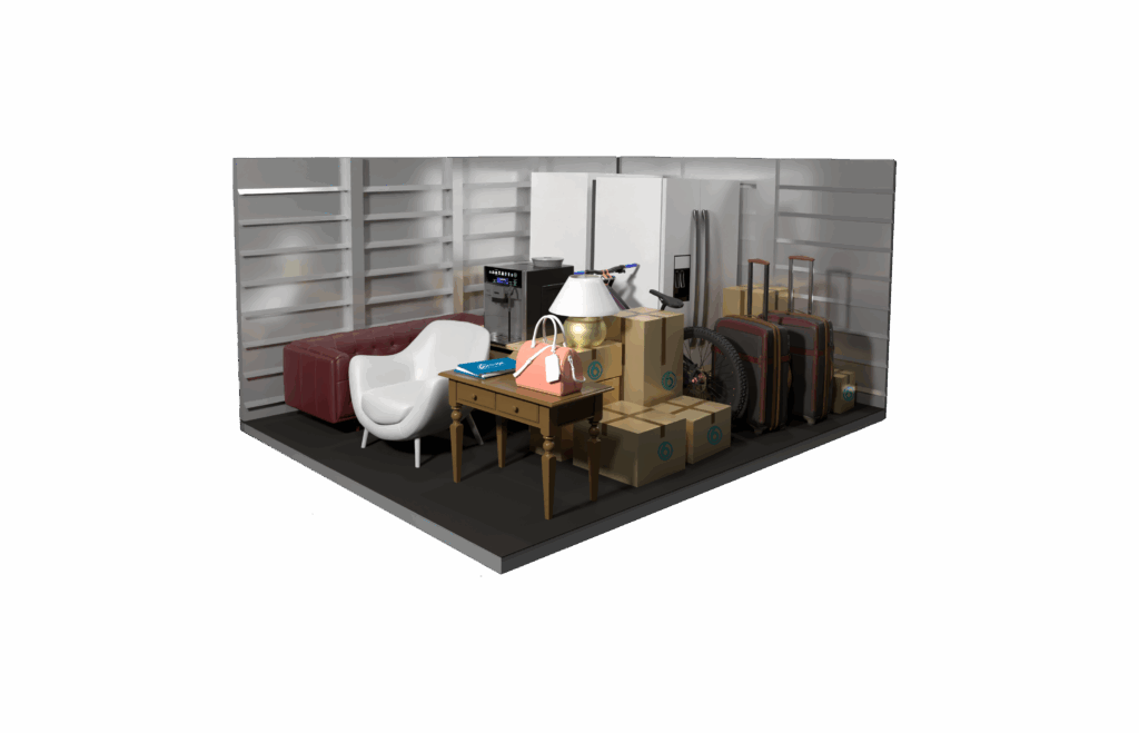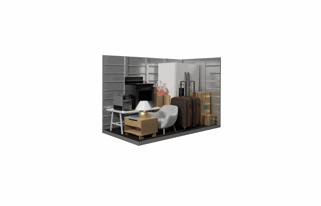 This 150 sq ft storage unit offers generous space—about the size of a large bedroom—making it perfect for bigger storage needs. It can accommodate the contents of a two-bedroom apartment or small home. It can hold larger furniture, appliances, and multiple boxes—perfect for moving, downsizing, or storing extra inventory for your business.